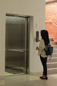 Lift di Gedung Pambiji Kampus Terpadu Universitas Widya Mataram Yogyakarta yang dapat digunakan oleh civitas maupun mahasiswa Universitas Widya Mataram Yogyakarta